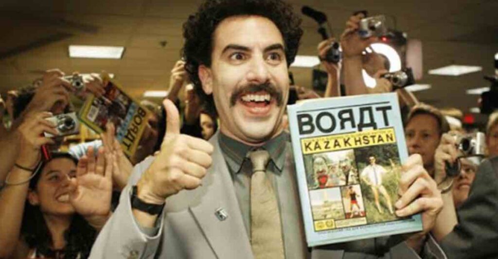 Во-первых, еще оригинальный фильм «Борат: изучение американской культуры на благо славного народа Казахстана» (просим заметить, что во второй части присутствует оскорбительное изменение “некогда славный”, но мы оставим это на совести маркетологов) вызвал волну возмущения как внутри нашей страны, так и в диаспорах по всему миру. Но при этом, при бюджете в 18 миллионов долларов он собрал в мировом прокате более 250 миллионов долларов. Такая популярность стала причиной стереотипного отношения к Казахстану, который показан в фильме в уничижительном виде как варварская и нищая страна. Последовали коллективные иски к создателям и Саше Барону Коуэну, но, к сожалению, Фемида слепа, и не всегда видит справедливость.