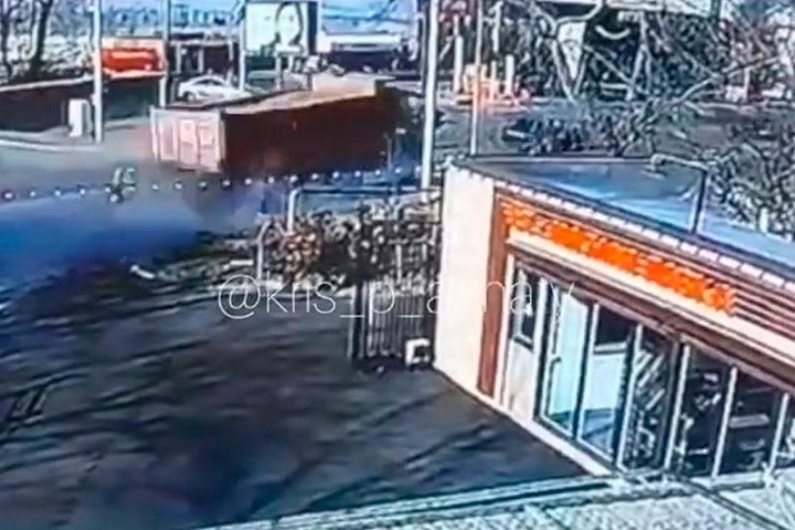 Shacman бросило в сторону остановочного комплекса, где в этот момент находилась женщина. Грузовик задел ее и снес остановочный комплекс. После этого машину повело в сторону трансформатора.