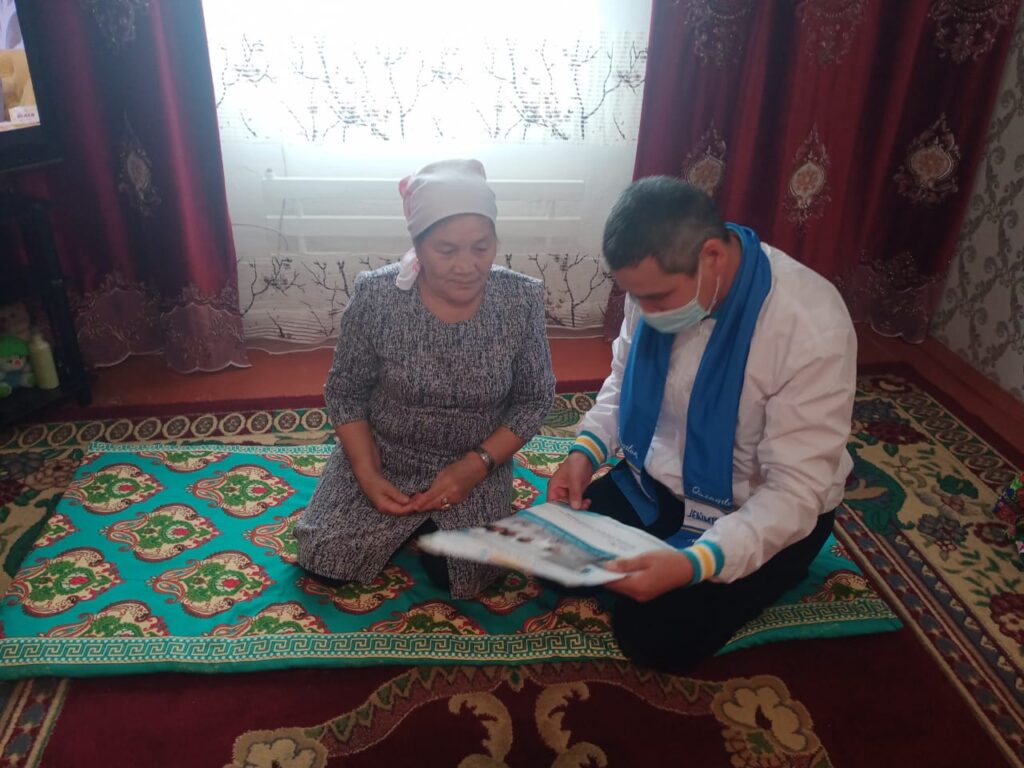 Бүгін «Nur Otan» партиясының Сырым аудандық филиалының, аудандық штабтың белсенді мүшелері мен танымал тұлғалары, партия атынан сайлауға түсетін үміткерлер «Есіктен – есікке» акциясы аясында Бұлан, Алғабас, Тоғанас ауылдарына барды, деп хабарлайды Optimism.kz.