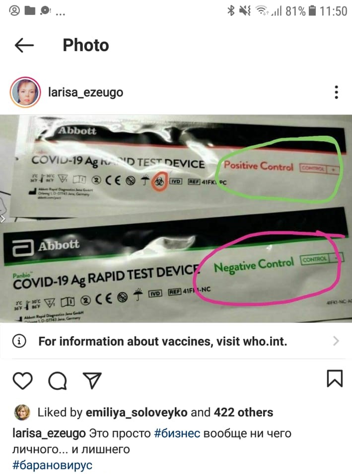 Пользователи Казнета обсуждают фото «тестов» на СOVID-19. Упаковки на снимке маркированы по-разному: на одном указано Positive Control, а на другом — Negative Control. Кроме того, на одной из них есть знак биологической опасности. Некоторые пользователи сочли это доказательством того, что результат теста предопределен заранее, а проводить их опасно для жизни. Об этом сообщает Optimism.kz со ссылкой на Stopfake.kz.