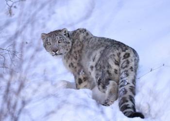 Снежному барсу установлен спутниковый ошейник для его защиты и мониторинга