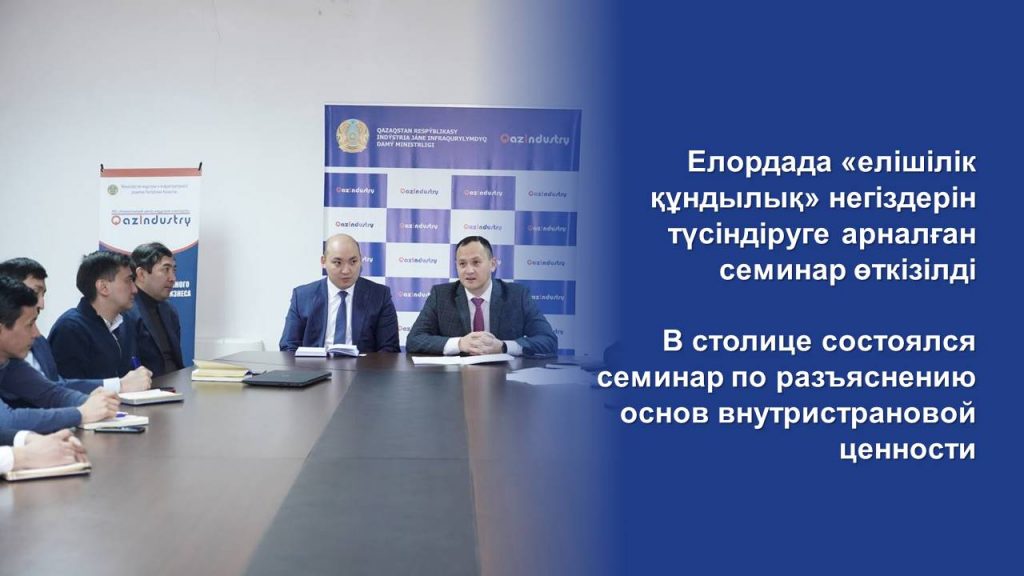 Представители Министерства индустрии и инфраструктурного развития РК совместно с казахстанским центром индустрии и экспорта QazIndustry провели семинар для сотрудников финансовых институтов. В ходе мероприятия разъяснены основы «внутристрановой ценности» и политики.
