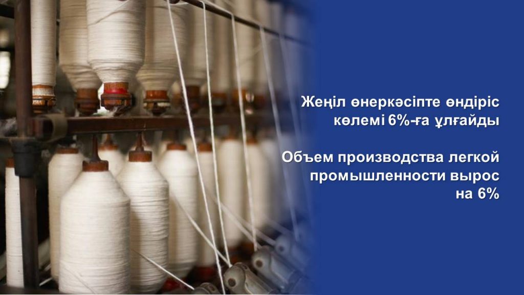 На сегодняшний день развитие легкой промышленности является одним из приоритетных направлений, поскольку отрасль имеет социальную значимость, обеспечивая высокую занятость населения. Особое внимание уделяется новым проектам. В 2022 году реализовано 6 инвестиционных проектов на сумму 9,9 млрд тенге с созданием более 560 рабочих мест.