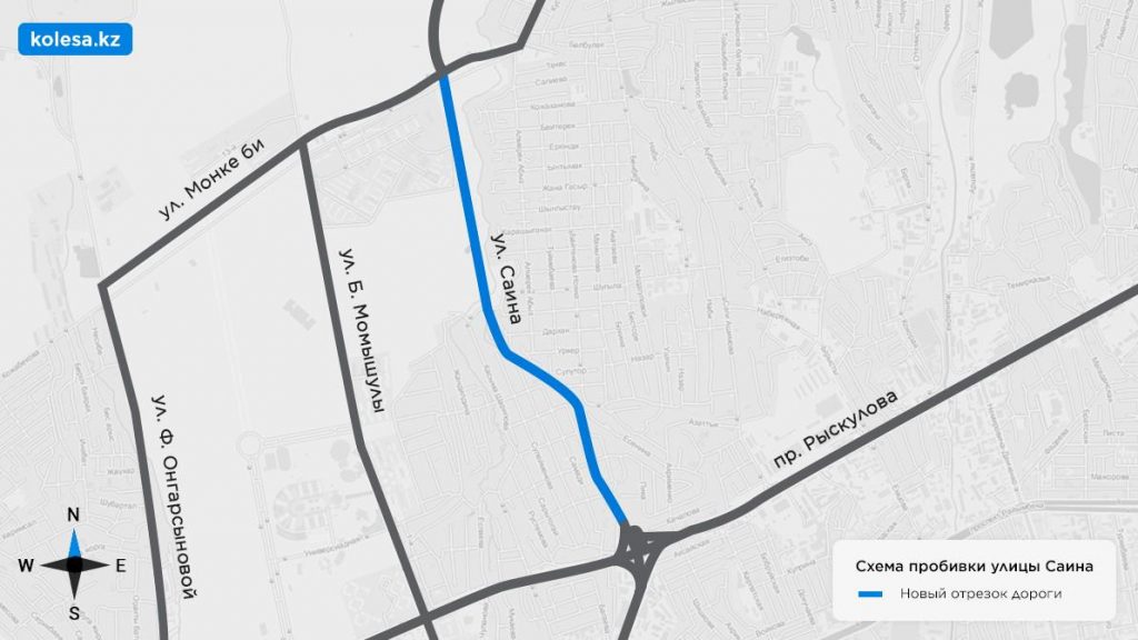 «Благодаря этому значительно уменьшится транспортная нагрузка с основных магистральных улиц города, в том числе с проспекта Рыскулова и улицы Момышулы, а также улиц районного значения», — заявил градоначальник.