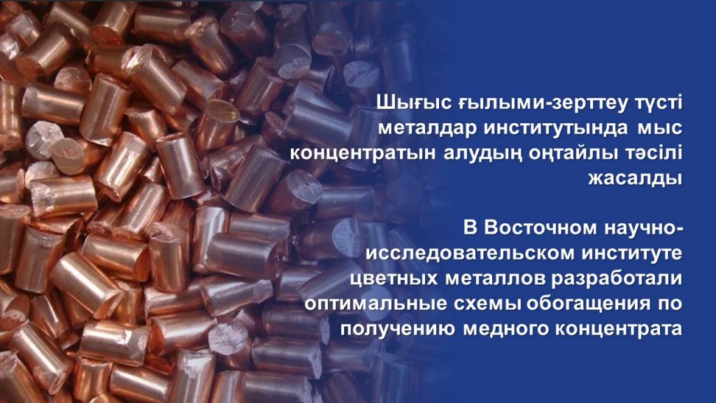 Так, для решения задач по переработке окисленных руд со средним содержанием меди 0,35%, поставленных ТОО Irkaz Metal Corporation, сотрудниками лаборатории технологических испытаний минерального сырья Восточного научно-исследовательского горно-металлургического института цветных металлов разработаны оптимальные схемы обогащения по получению медного концентрата с максимально возможным извлечением.