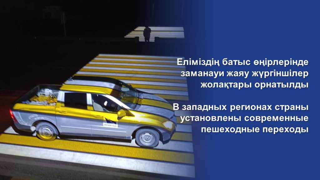 В целях снижения количества дорожно-транспортных происшествий с участием пешеходов на дорогах республиканского значения продолжается установка проекционных пешеходных переходов.
