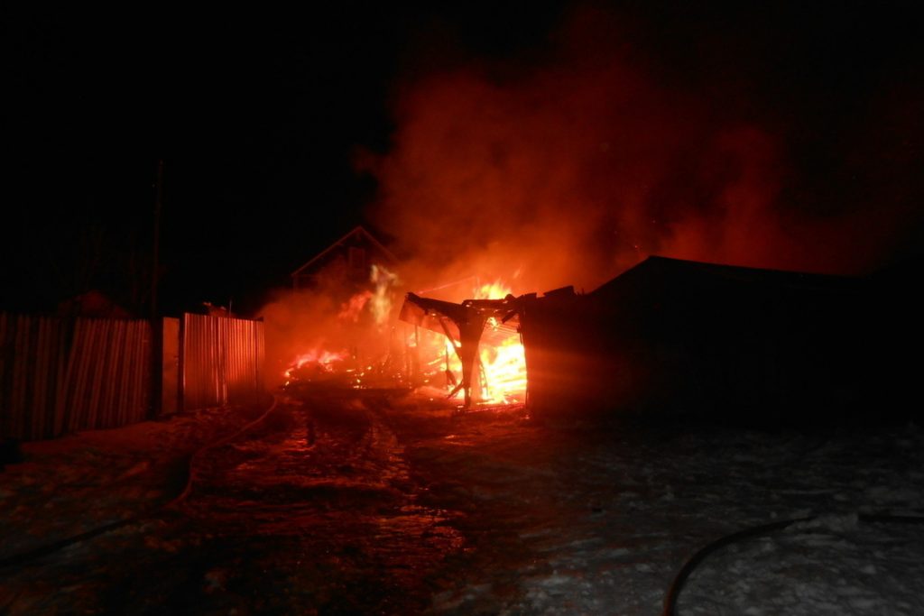 Внутри одноэтажного строения находятся строительные материалы. На момент прибытия на место пожарных — горело на всей площади.