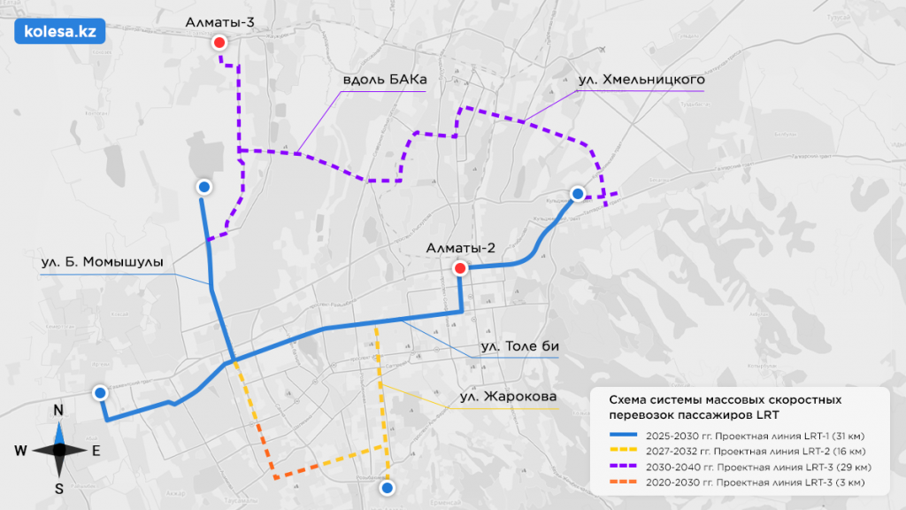 Тут стоит напомнить, что по развитию LRT в Алматы и области за последние 10 лет было презентовано множество вариантов, представленный выше — один из последних, свежих. Несколько лет тому назад, в