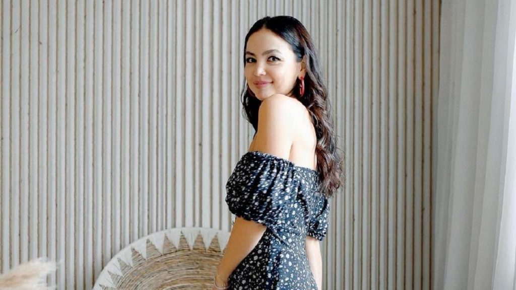 Актриса запечатлелась в ярко-розовом платье с открытыми плечами. Ее вечерний аутфит дополнило колье. Асель предпочла нюдовый макияж и аккуратную укладку с романтическими локонами.