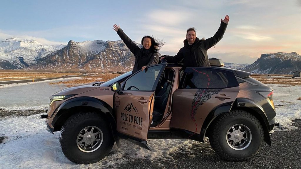 Путешествие протяжённостью 27 000 км планировалось четыре года, и теперь его предстоит воплотить в жизнь чете Криса и Джули Рэмси, семейке авантюристов со стажем из Великобритании, — поездкой от Северного магнитного полюса к Южному. Nissan хочет доказать скептикам выносливость и проходимость электромобилей, Ariya в частности, в разнообразных природных и климатических условиях с перепадом температур от —30 ⁰C до +30 ⁰C.