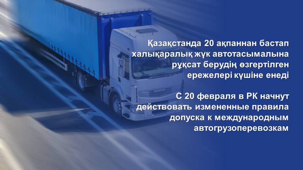 Приказом Министра индустрии и инфраструктурного развития Республики Казахстан № 715 от 13 декабря 2022 года («О внесении изменений в некоторые приказы Министра транспорта и коммуникаций РК и и.о. Министра по инвестициям и развитию РК») внесены изменения в Правила допуска перевозчиков к осуществлению международных автомобильных перевозок грузов и Правила применения разрешительной системы автомобильных перевозок в Республике Казахстан в международном сообщении.