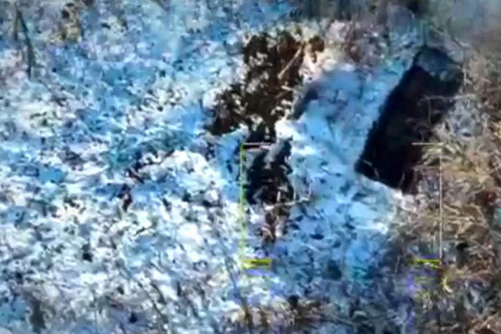На коротком видео запечатлено, как оператор БПЛА осматривает территорию и при обнаружении окопов и блиндажей сбрасывает с дрона снаряды, чтобы уничтожить оставшегося противника.