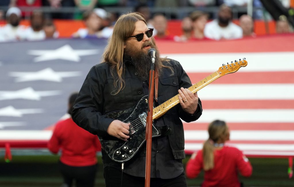 Крис Стэплтон исполнил национальный гимн США, чтобы открыть финал Суперкубка в Глендейле, штат Аризона, сегодня вечером (12 февраля).