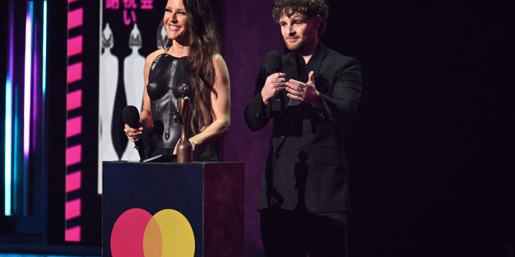 Выйдя на сцену, чтобы забрать трофей, Риан Тисдейл из Wet Leg продекламировала часть печально известной приветственной речи Алекса Тернера на BRITs 2014 года.