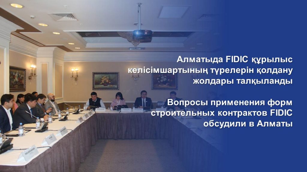 В Алматы состоялся круглый стол по вопросам применения в Казахстане международных стандартов, в том числе стандартных форм строительных контактов FIDIC. В мероприятии участвовали представители бизнес сообщества и государственных органов.