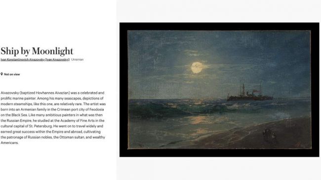 И вот уже картину Ивана Айвазовского «Корабль в лунном свете» 12 февраля опубликовали на сайте нью-йоркского Метрополитен-музея с подписью: автор — украинец, живший на территории Российской империи и снискавший славу «у русской знати, османского султана и богатых американцев».