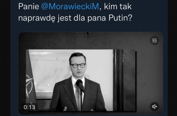 Накануне аккаунт «Гражданской платформы» в «Твиттере» опубликовала видеоролик о том, кем на самом деле является Владимир Путин для Матеуша Моравецкого.