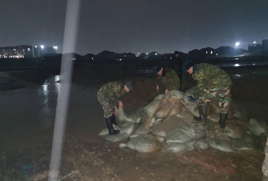 «В целях недопущения подворового затопления в микрорайонах города Шымкента проводились работы по откачке воды и выкладке мешков с инертным материалом.