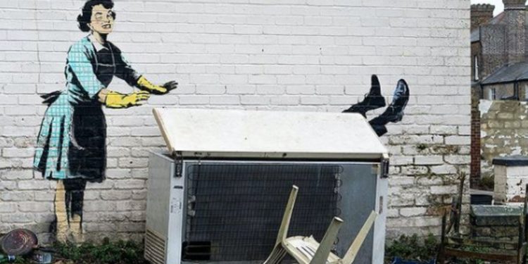 На прошлой неделе (14 февраля) неуловимый художник представил новое произведение искусства в городе Кент, которое, по-видимому, освещает насилие в семье в отношении женщин.