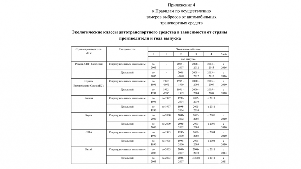 С ошибкой в правилах, кстати. указали и экологические классы автомобилей. Сравните с таблицей в существующем стандарте: