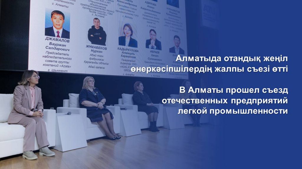 На съезде выступила руководитель управления легкой промышленности Комитета индустриального развития Министерства индустрии и инфраструктурного развития РК Айжан Адилова. Она рассказала о мерах государственной поддержки легкой промышленности.