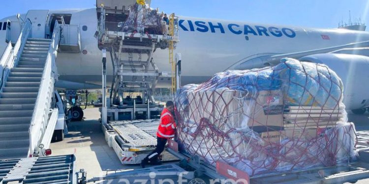 В соответствии с поручением Главы государства Касым-Жомарта Токаева Республика Казахстан своевременно оказал гуманитарную помощь Турецкой Республике. Гуманитарный груз, направленный в зону бедствий, включал в себя предметы теплой одежды, зимние палатки, металлические кровати, постельные принадлежности, медикаменты и другие вещи первой необходимости общим весом порядка 55 тонн. Гумпомощь из Казахстана была отправлена в турецкие города Газиантеп и Адана спецбортами государственной авиакомпании «Беркут» и авиатранспортом турецких грузоперевозок. Далее с аэропорта города Газиантеп и военной авиабазы Инджирлик средства гуманитарного назначения направлялись в самые пострадавшие от землетрясения регионы.