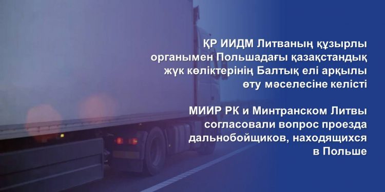 «Для обеспечения проезда отечественных грузовых автоперевозчиков Министерством индустрии и инфраструктурного развития РК совместно с представителями ассоциации казахстанских перевозчиков составлен актуальный список наших автомобилей. Также совместно с посольствами РК в Варшаве и Вильнюсе проведены переговорные процессы с польскими и литовскими уполномоченными органами в области транспорта для разрешения выезда казахстанского транспорта», сообщили в МИИР.