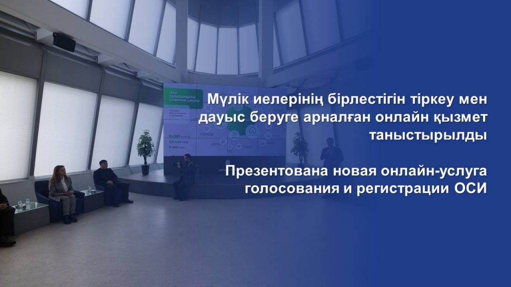 Сегодня на площадке Astana Hub была презентована новая онлайн-услуга «Голосование и регистрация ОСИ». В мероприятии участвовали вице-министр индустрии и инфраструктурного развития РК Динара Щеглова, представители Казахстанского центра модернизации и развития жилищно-коммунального хозяйства, МЮ РК и МЦРИАП.