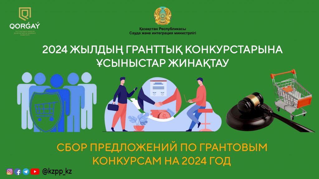 Комитет по защите прав потребителей Министерства торговли и интеграции Республики Казахстан объявляет о сборе предложений от НПО и общественности для формирования перечня приоритетных направлении государственных грантов для НПО на 2024 год.