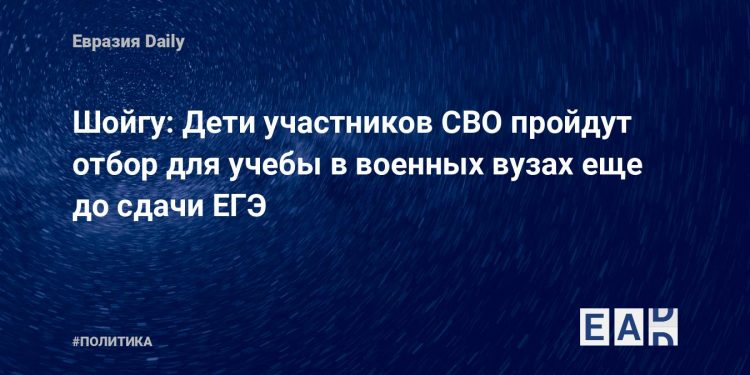 Дети военнослужащих, участвующих в спецоперации на Украине, пройдут профессиональный отбор для последующей учебы в вузах Министерства обороны РФ еще до сдачи ЕГЭ и получения аттестатов. Об этом заявил сегодня, 7 марта, глава Минобороны России Сергей Шойгу в ходе селекторного совещания с руководящим составом Вооруженных сил РФ.