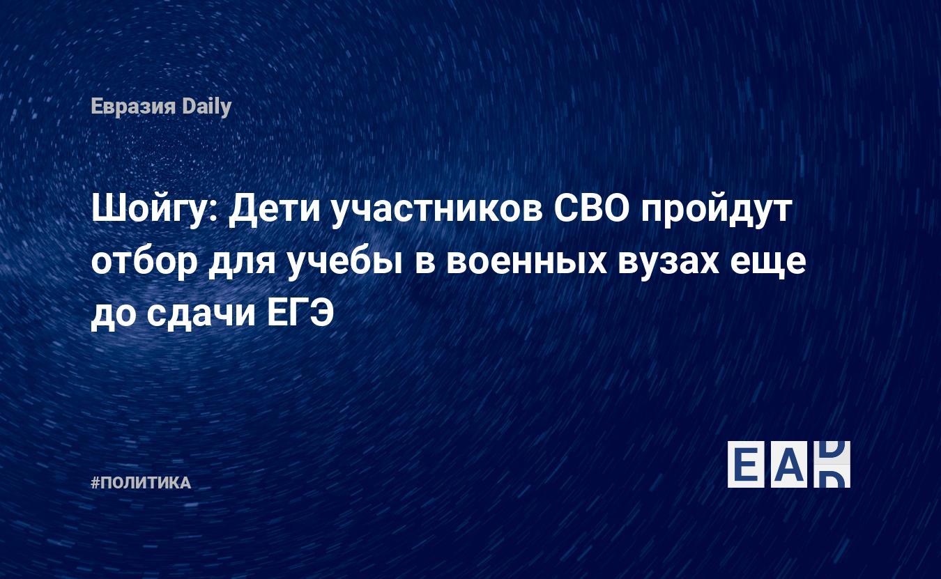 Дети военнослужащих, участвующих в спецоперации на Украине, пройдут профессиональный отбор для последующей учебы в вузах Министерства обороны РФ еще до сдачи ЕГЭ и получения аттестатов. Об этом заявил сегодня, 7 марта, глава Минобороны России Сергей Шойгу в ходе селекторного совещания с руководящим составом Вооруженных сил РФ.
