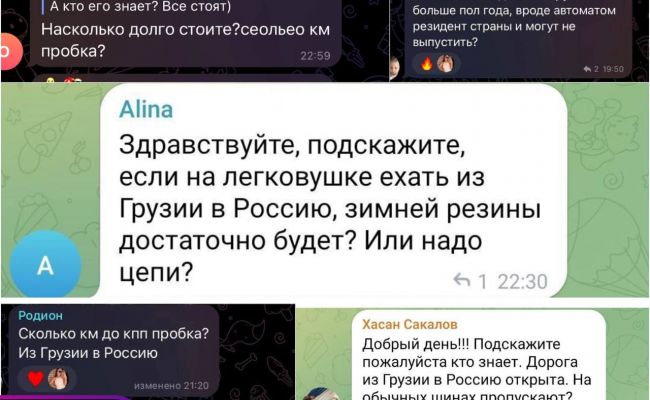 Очевидцы отмечают, что в очереди простаивают сотни автомобилей, на них висят как российские, так и грузинские номера. В специализированных чатах многие водители интересуются, есть ли на дорогах в России гололед и где лучше всего обменять валюту.