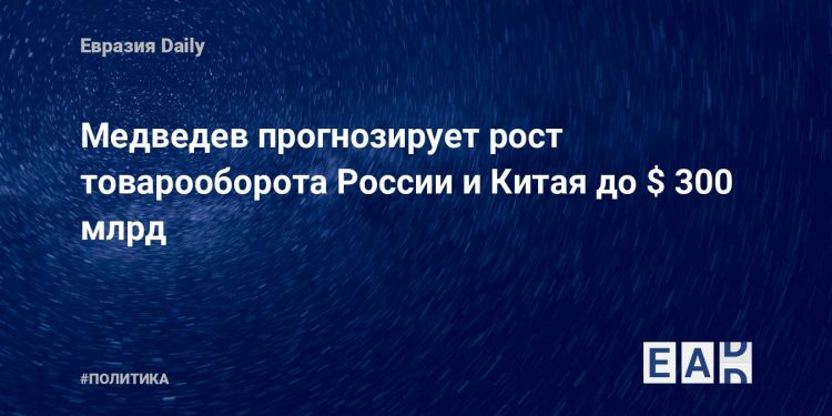 Объем взаимной торговли России и Китая в ближайшие пару лет может превысить $ 300 млрд. Такое мнение высказал заместитель главы Совета безопасности РФ Дмитрий Медведев, отвечая на вопрос ТАСС в интервью российским СМИ и пользователям «ВКонтакте».