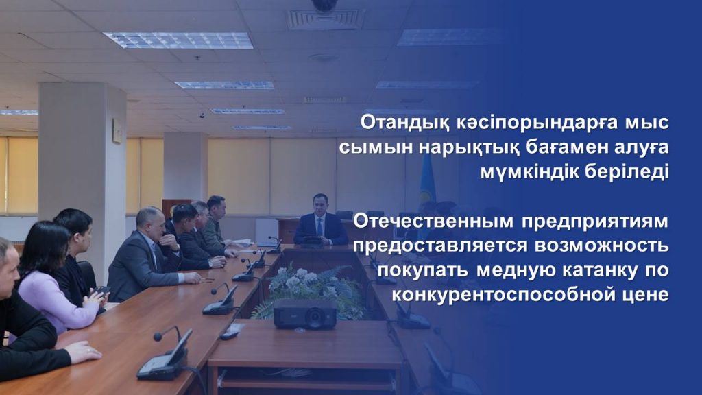 Согласно данному соглашению ТОО «Корпорация «Казахмыс» обеспечит сырьем ряд предприятий обрабатывающей промышленности в полном объеме и по сниженной цене, в числе которых АО «Ульбинский металлургический завод», ТОО «Казэлектромаш», ТОО Alageum Cable Products, ТОО HARMONY CABLE, ТОО K.AZTEL, ТОО Trans Cable, ТОО «Акнур кабель», ТОО «КазЭнерго-1», АО «Казэнергокабель», ТОО «ОК Орал Кабель», ТОО «Светотехника-1», ТОО «Казцентрэлектропровод», ТОО «Талдыкорганкабель» и ТОО «Электрокомплект-1». Таким образом, предприятиям предоставляется возможность покупать медную катанку по конкурентоспособной цене.