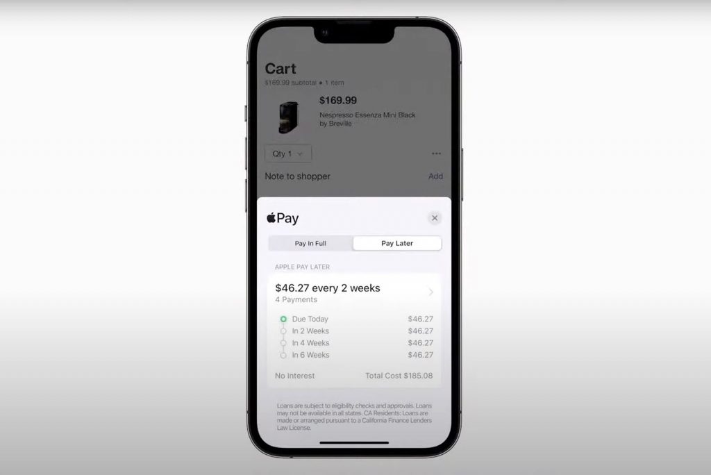 Предложение Apple Pay Later — это расширение Apple Pay, которое позволяет людям распределять стоимость покупок. Эти покупки должны стоить менее 1000 долларов, а Apple пресс-релиз предполагает, что не все продавцы поддержат его. Apple заявляет, что «будет сделано льготное кредитование», чтобы гарантировать, что деньги не будут ссужены тому, кто не может позволить себе их вернуть, и все это с использованием программы рассрочки Mastercard. Goldman Sachs также участвует в качестве эмитента платежных данных Mastercard, используемых для Apple Pay Later.