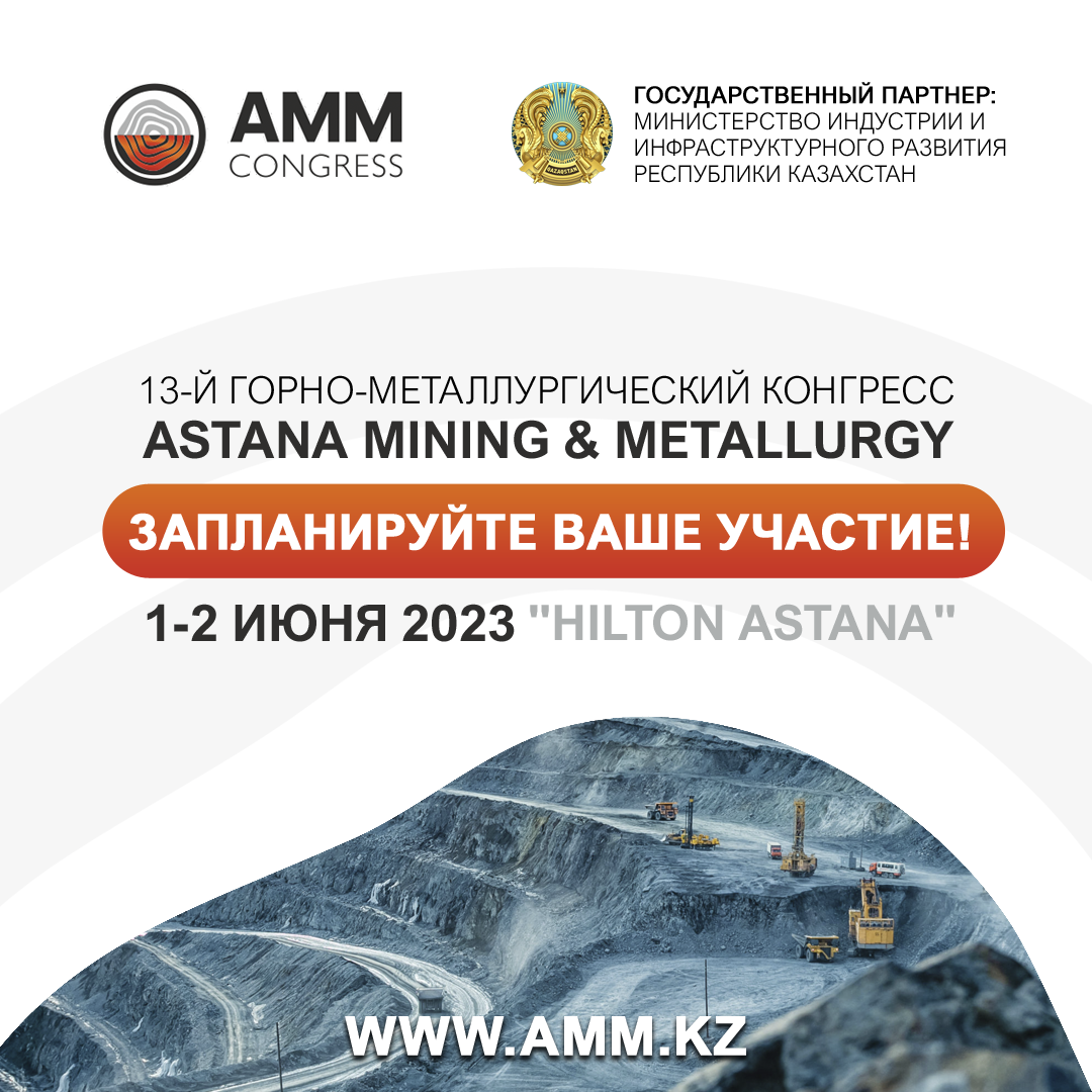 С 1 по 2 июня 2023 года при поддержке Министерства индустрии и инфраструктурного развития РК в столице пройдет 13-й Международный горно-металлургический Конгресс Astana Mining & Metallurgy – АММ 2023.