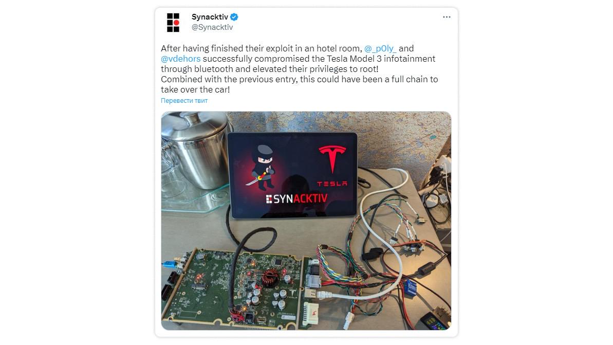 Эксперты по кибербезопасности команды Synacktiv объявили о двух успешных попытках взлома бортовой электроники электрокара Tesla. Проведены они были в рамках официального