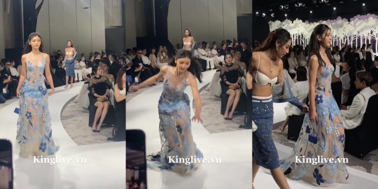 @kinglive.vn Khoảnh khắc nữ người mẫu té ngã trong show ‘Shadow’ của NTK Lê Thanh Hoà, được bạn diễn xách váy vì đi không vững #Kinglive #amm ♬ yêu anh đi mẹ anh bán bánh mì — TikTok Remix — Phúc Du