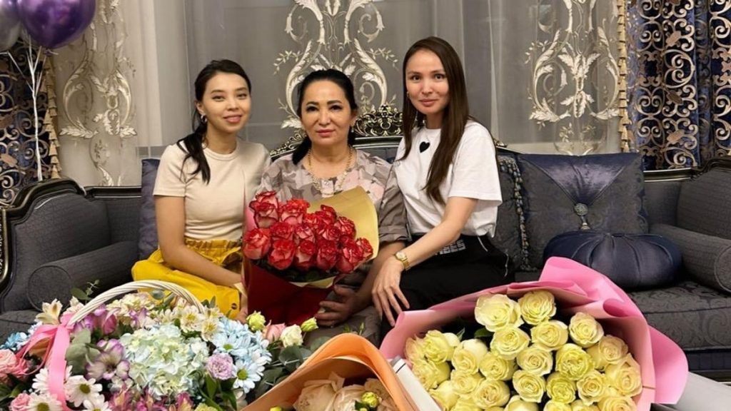Жена ее старшего сына Кайрата, Жулдыз Абдукаримова, преподнесла свекрови роскошный букет цветов, а средняя невестка встретила именинницу с тортом в руках, на котором зажжены свечи.