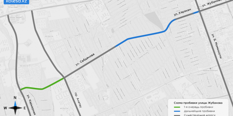 Начать работы городские власти запланировали в 2023 году. Первый участок пробивки, от Карьерной до Алатау, получится длиной 1.2 км. Дорогу сделают четырёхполосной с велодорожками и тротуарами по обеим сторонам. Стоимость данного этапа чуть больше 3 млрд тенге.