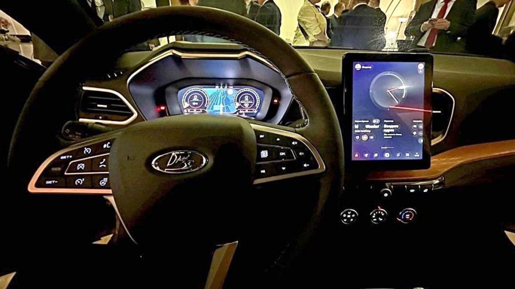 Предположительно, диагональ тачскрина составит около 10 дюймов. Однако его полезная площадь будет меньше, так как на фото можно увидеть крупную рамку. Тем не менее ранее для серийных Lada АВТОВАЗ таких больших экранов не предлагал.