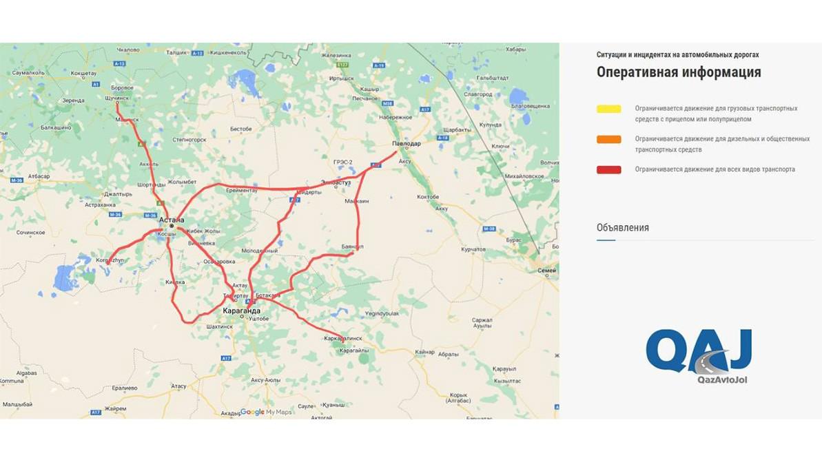 В свою очередь, НК «Казавтожол» предупреждает, что в Акмолинской и Карагандинской областях из-за непогоды ограничено движение на 15 участках республиканских трасс. Дороги чистят 500 единиц спецтехники. За минувшие сутки из снежных заносов вызволено 65 машин.