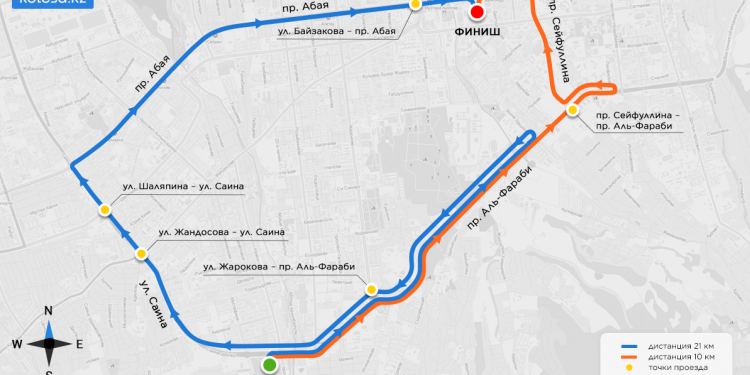 Аль-Фараби до Абая — с 8:30 до 10:10. Движение машин по западной стороне Саина ограничивать не станут.