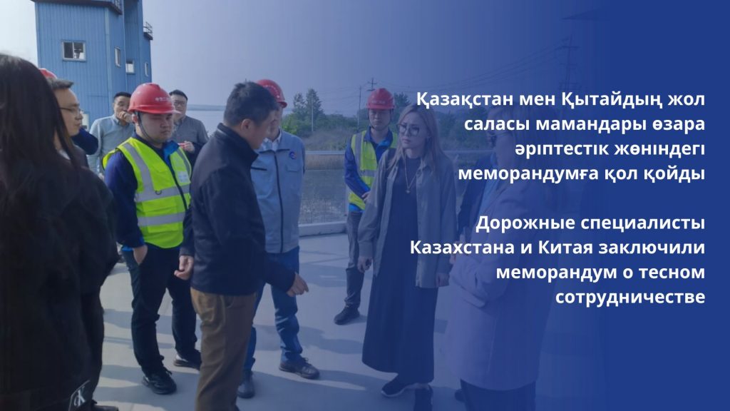 «Подписан меморандум о сотрудничестве с JSTI, обсуждены вопросы по установлению и организации дорожно-исследовательского института двух стран, рассмотрены вопросы по реформированию нормативно-технической базы в КНР, изучена процедура внедрения новых технологий. Также обсуждены дальнейшие планы по тесному сотрудничеству», отмечает А.Нугманова.