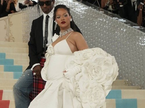 Барбадосская певица прошла по красной дорожке на Met Gala 2023, организованном в Метрополитен-музее в Нью-Йорке в понедельник вечером вместе со своим партнером A$AP Rocky.
