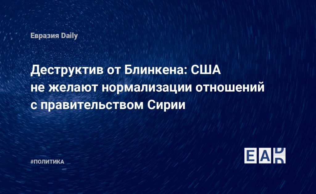 Вашингтон не будет нормализовывать отношения с правительством Башара Асада и не будет поддерживать в этом других, пока в Сирии не произойдут реальные политические преобразования при содействии Организации Объединенных Наций, заявил госсекретарь США Энтони Блинкен.