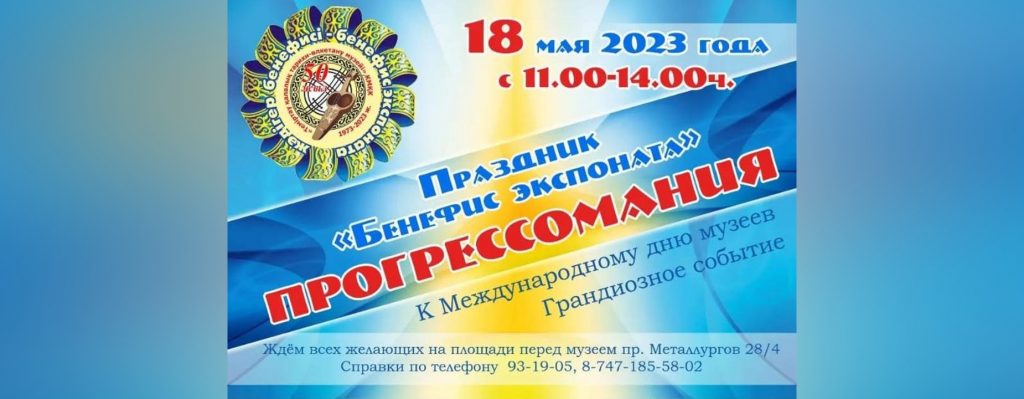 В Темиртау состоится праздник «Прогрессомания», организованный городским историко-краеведческим музеем в честь Международного дня музеев. В рамках мероприятия будут представлены экспозиционные блоки, включающие в себя коллекции различных предметов, таких как утюги, весы, бритвы, обувь, проигрыватели, сумки, счёты, телевизоры и телефоны. Гости смогут посмотреть выставку, посетить творческие локации и участвовать в интерактивных конкурсах, а также насладиться концертом с участием учеников школы искусств имени Г. Жубановой. Мероприятие начнется в 11:00 по адресу: г. Темиртау, ул. Металлургов, 28/4.