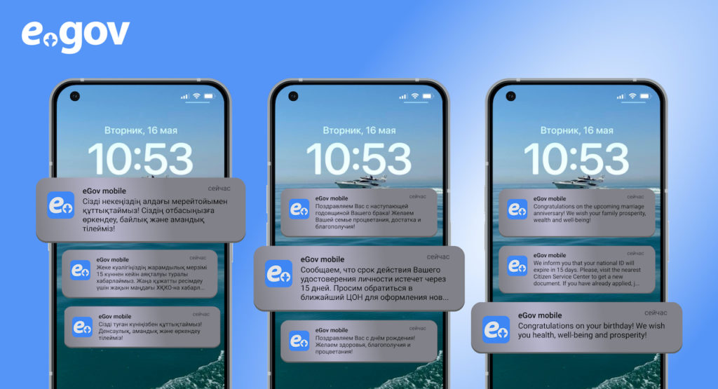 Приложение eGov Mobile будет использовать push-уведомления для напоминания казахстанцам о важных датах, таких как день рождения и годовщина свадьбы, а также об окончании срока действия документов. Уведомления будут содержать кнопки, которые пользователи смогут использовать для получения государственных услуг и подписания документов. В приложении также будут доступны проактивные услуги и новые категории уведомлений. Если приложение не установлено, уведомления будут отправлены в виде SMS-сообщений на мобильные устройства пользователей. Приложение доступно для скачивания в App Store для iOS и в Play Market и App Gallery для Android.