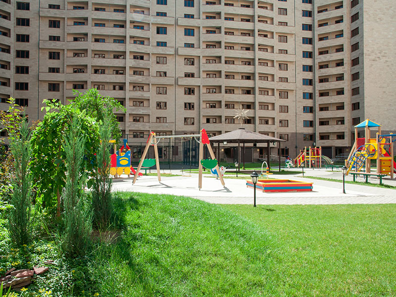 - реализация проекта «Двор-сад» по ул. Шевченко, 129, Алмалинский район (кустарники-изгородь, цветники, газон, скамьи, тренажеры, игровая зона и др.);