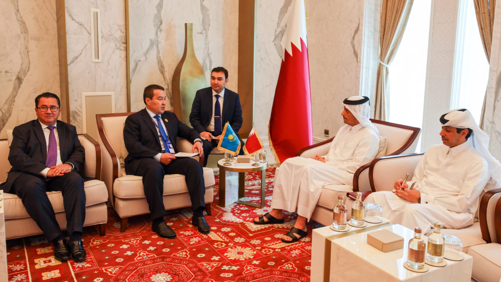 Премьер-Министр Казахстана Алихан Смаилов провел переговоры с Премьер-Министром – министром иностранных дел Катара шейхом Мухаммедом бин Абдурахманом Аль Тани в рамках участия в третьем Катарском экономическом форуме в Дохе.